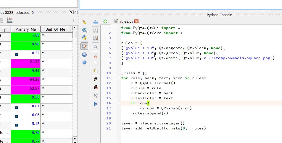 : Conditional formatted cells in QGIS? Why the bloody hell not!? and with icons!!!11!