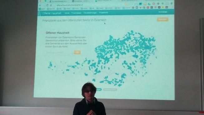 Interactiv.es presenting data viz work on budget data offenerhaushalt.at #dsci15