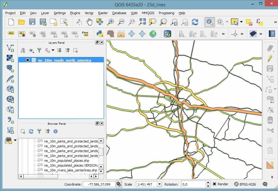 2.5D lines in #QGIS using new Geometry Generator: yea or nay? #GIS #cartography #25D