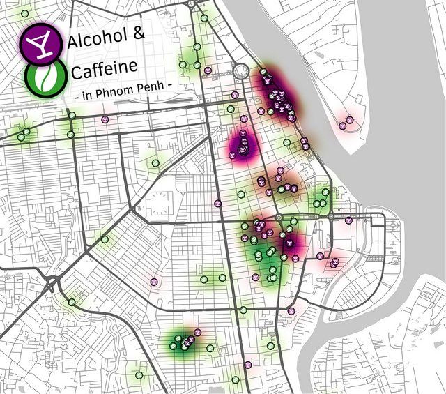 great map of alcohol & caffeine using #QGIS & #OSM, particularly like the legend