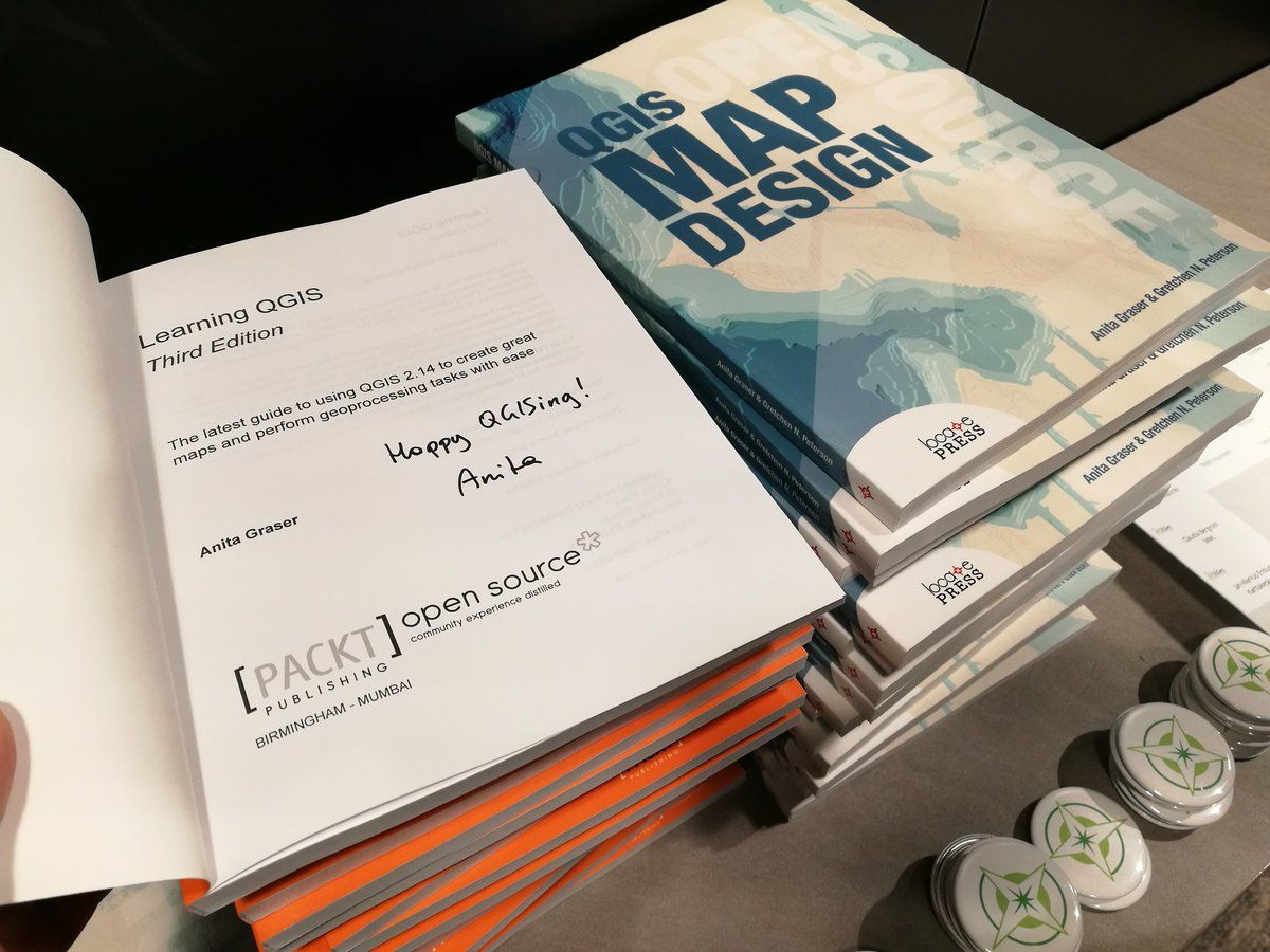 #Foss4gFinland step 1: signing all the books ... done! #QGIS