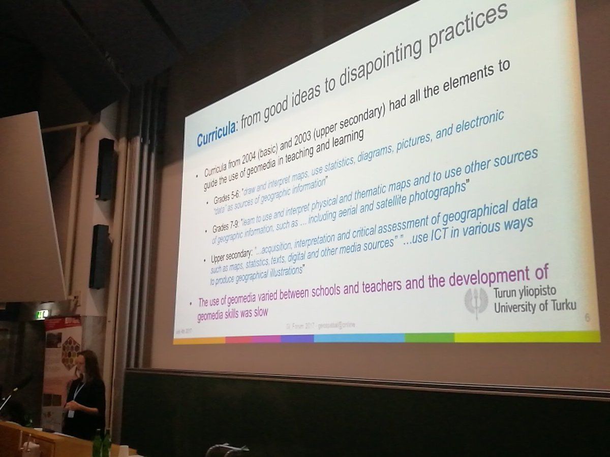#GIForum2017 keynote by Sanna Mäki on teaching with geomedia (not the company): theory vs practice & paikkaoppi.fi project